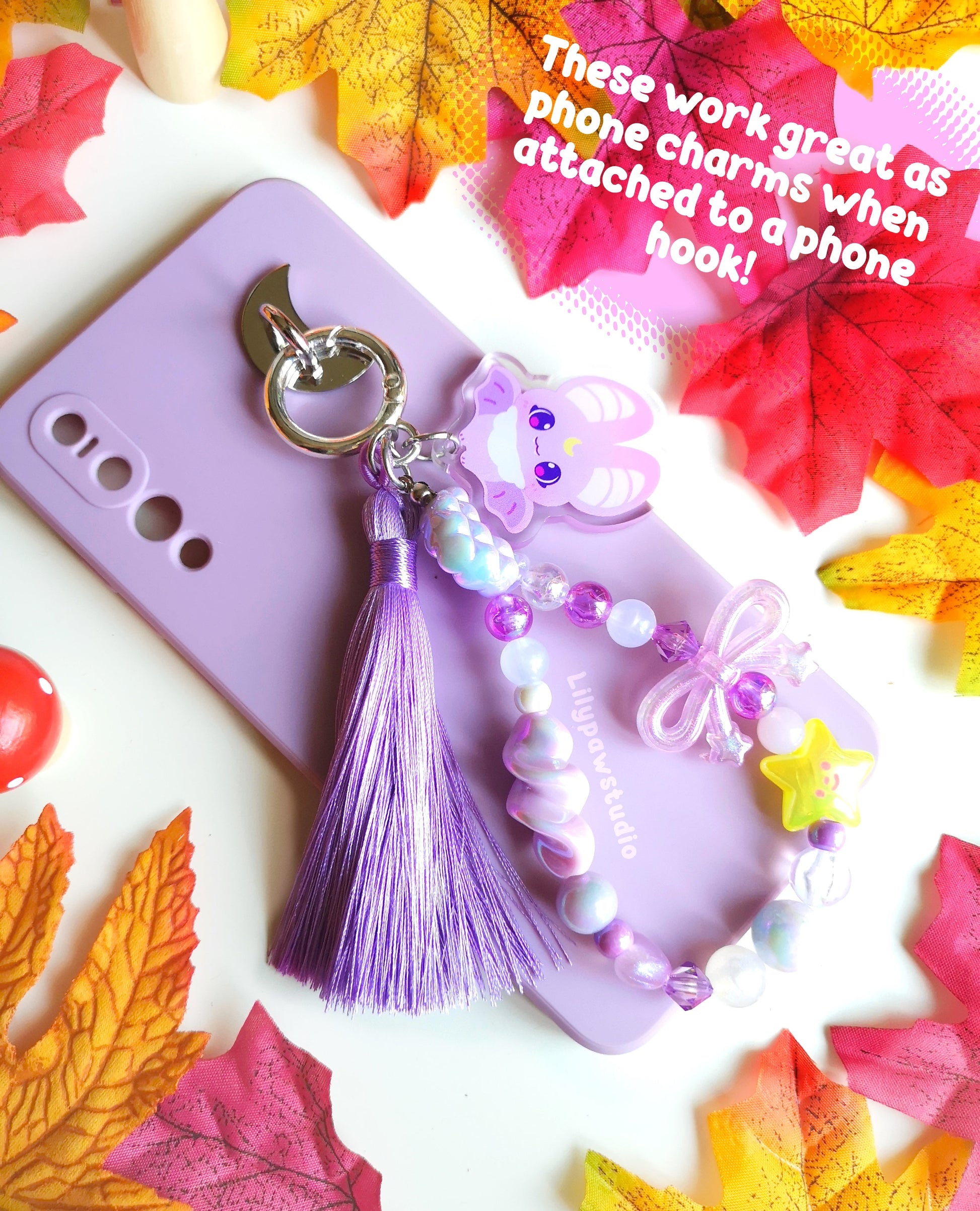These beaded charms are handmade/hand assembled with love and attention using a beautiful combination of beads in a night sky purple theme and each one is unique/ooak (no exact design will ever be duplicated!). They look beautiful on bags, pouches, keychains, phones or other devices!